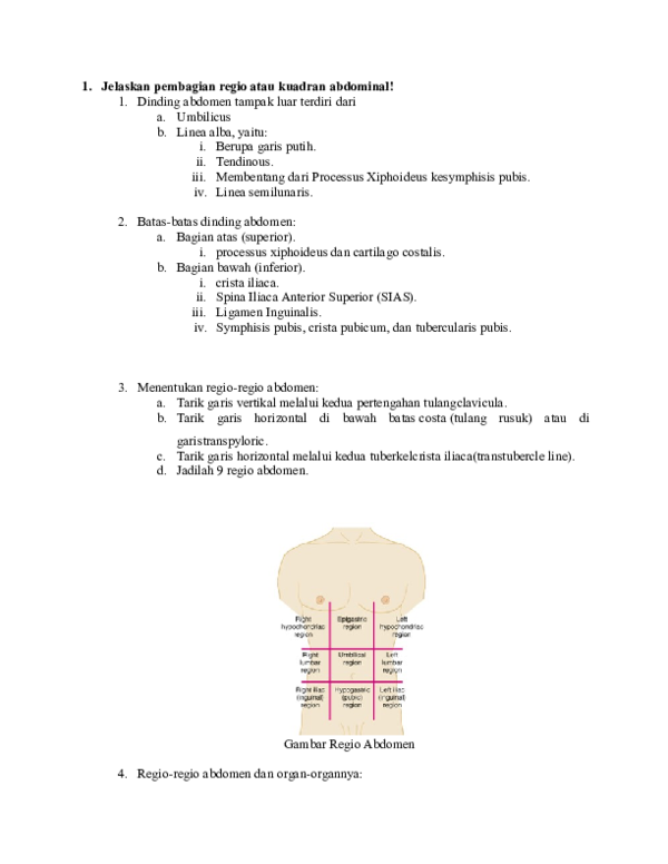 Dalam bentuk regio berbeda dari kuadran,regio digunakan untuk pemeriksaan yang lebih rinci atau bedasarkan pembagian yang lebih rinci tersebut permukaan depan abdomen terbagi menjadi 9 regio Ada beberapa cara untuk menentukan permukaan dinding perut dalam beberapa regio abdominal lateralis sinistra. 1.regio hypocondriaca dextra 2.regio epigastrica 3.regio hypocondriaca sinistra 4.regio abdominal lateralis dextra 5.regio umbilicalis 6.regio abdominal lateralis sinistra 7.regio inguinalis dextra. 4 regio abdomen ap supine abdomen regions of the thorax and abdomen upper left abdominal pain regiones del abdomen referred pain in abdomen hypochondrium surface anatomy organ. Tabel hubungan regio dengan organ viscera abdomen.